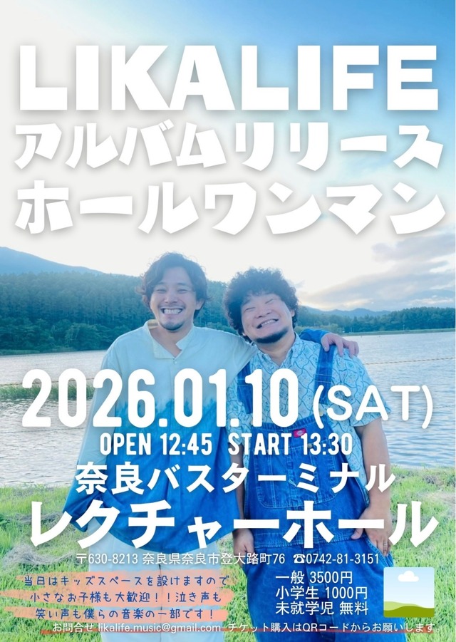 イベントの音楽制作にお力添えいただいています、ライカライフ様のホールコンサートが令和8年1月10日に奈良県で開かれます。 キッズスペースがあって、0歳の赤ちゃんから大人まで老若男女問わず楽しめます。 そばにいる人を大切にしたくなるような音楽に、ぜひ生でふれてください✨ 紙チケットを郵送します。 電子チケットはこちら https://tiget.net/events/435420 2026年1月10日日曜日 奈良バスターミナルレクチャーホールにて開催 LIKALIFE ホールコンサート 座席自由 近隣駐車場あり おむつ替えベッド、給湯器あり ミュージックビデオ リトルヒーロー https://www.youtube.com/watch?v=K6nmBjAQISc 願い https://youtu.be/zuD4gizK_No ⚠️囲碁や謎解きのイベントではありません。 ご協力いただいている LIKALIFE様 が主催のイベントです。 This is not a Go or riddle solving event. This event is organized by LIKALIFE. This product does not support international shipping.